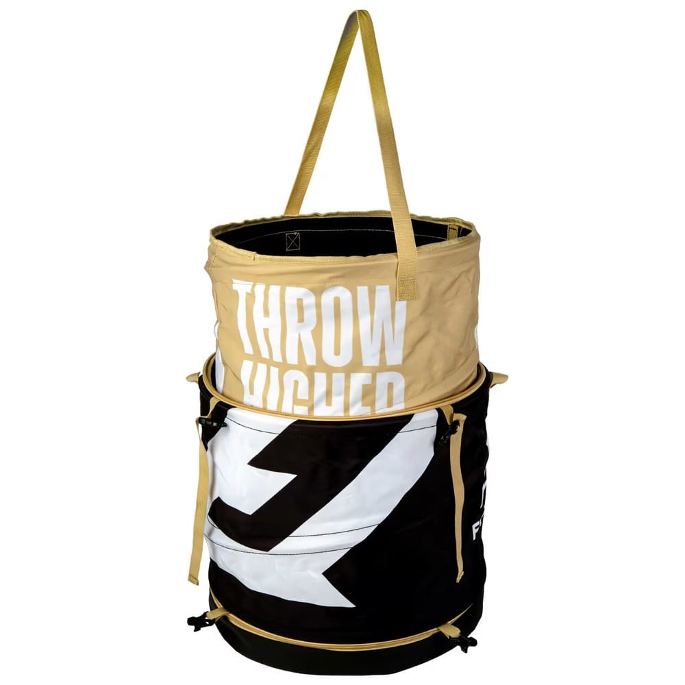 Stabilność: Po rozłożeniu torba jest stabilna, utrzymywana na ziemi przez ciężar rzutek i akcesoriów w dolnych kieszeniach, co działa jak balast.